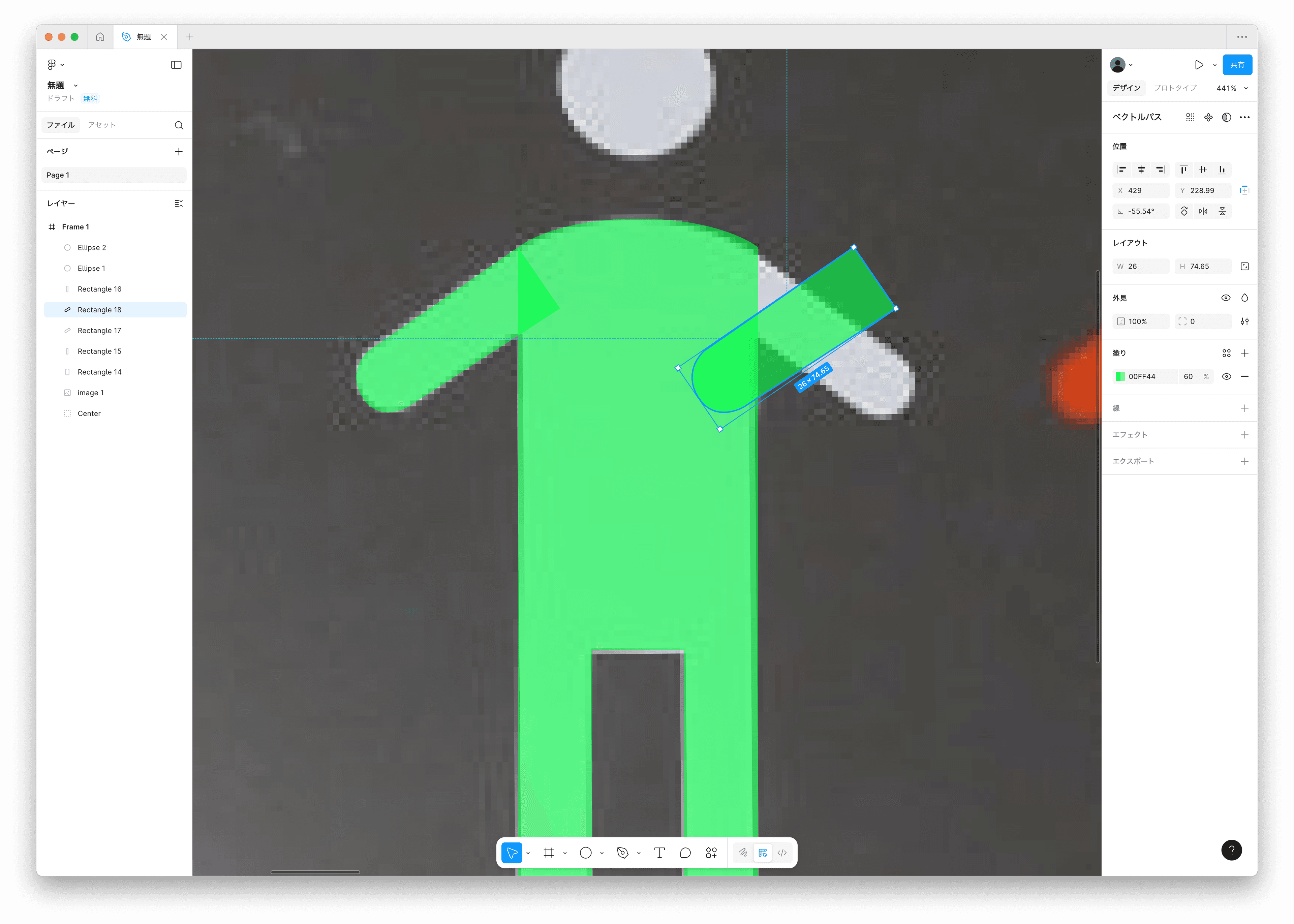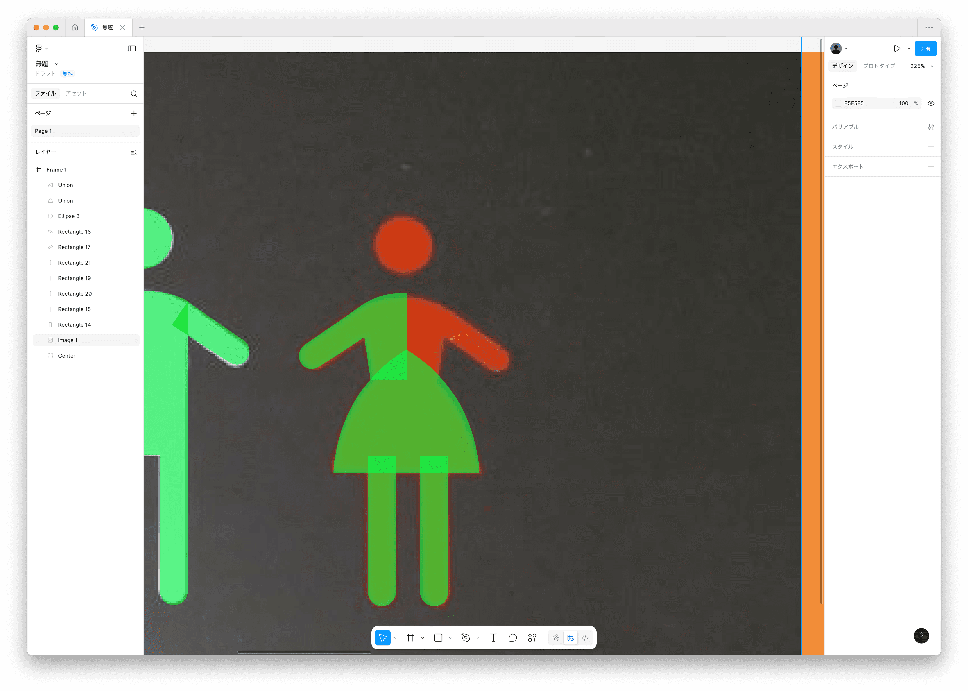 これもこだわり始めるとキリがないのですが、改装前のデザインにおけるトイレのピクトグラムは、人の形が多少独特でした。足が少し開いていて男子も女子も丸みを帯びています。これをネット上に上がっている素材をお借りしてトレースしていきます。