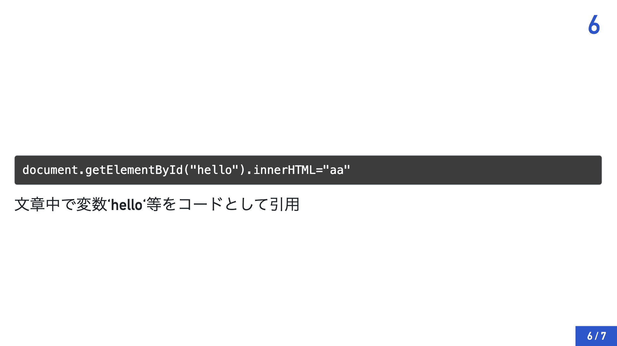 - themeには、main(デフォルト)(: スライドのメインカラー)あるいは、accent(: スライドのアクセントカラー)のいずれかを指定可