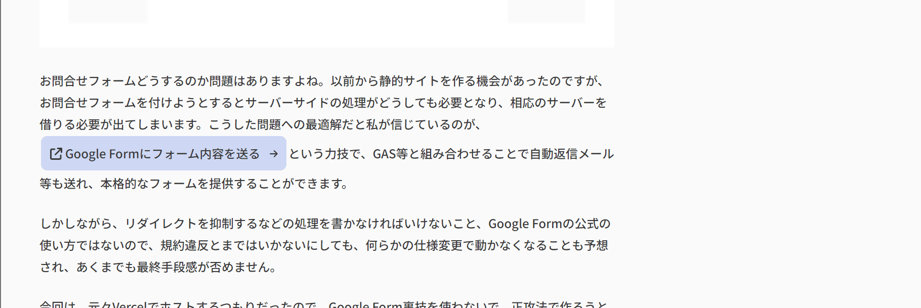 行間や改行は単なる見た目の問題だけでなく、文章やコンテンツの構造化に大きな役割を負っているため、不必要に乱すのは避けたいところです。そこで、ボタンのようなインラインブロック要素ではなく、素のインライン要素としてふるまえるように以下のようなデザインに変更しました。