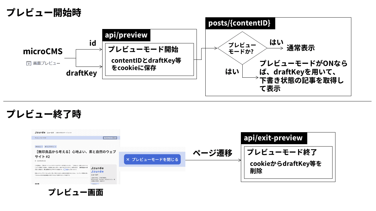 プレビューはNext.jsのプレビューモードを用いて実装します。