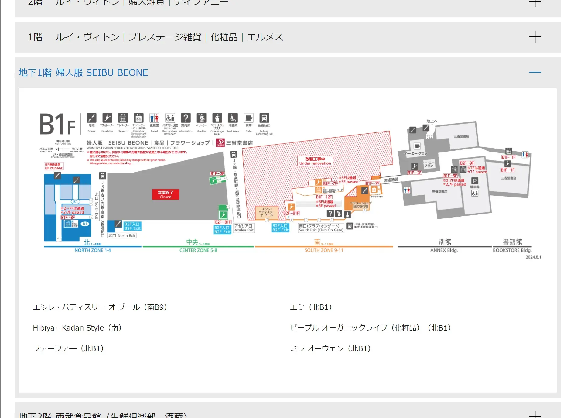 - 1Fの北ゾーン(ルイヴィトンを除く部分)は営業終了が決まっている
