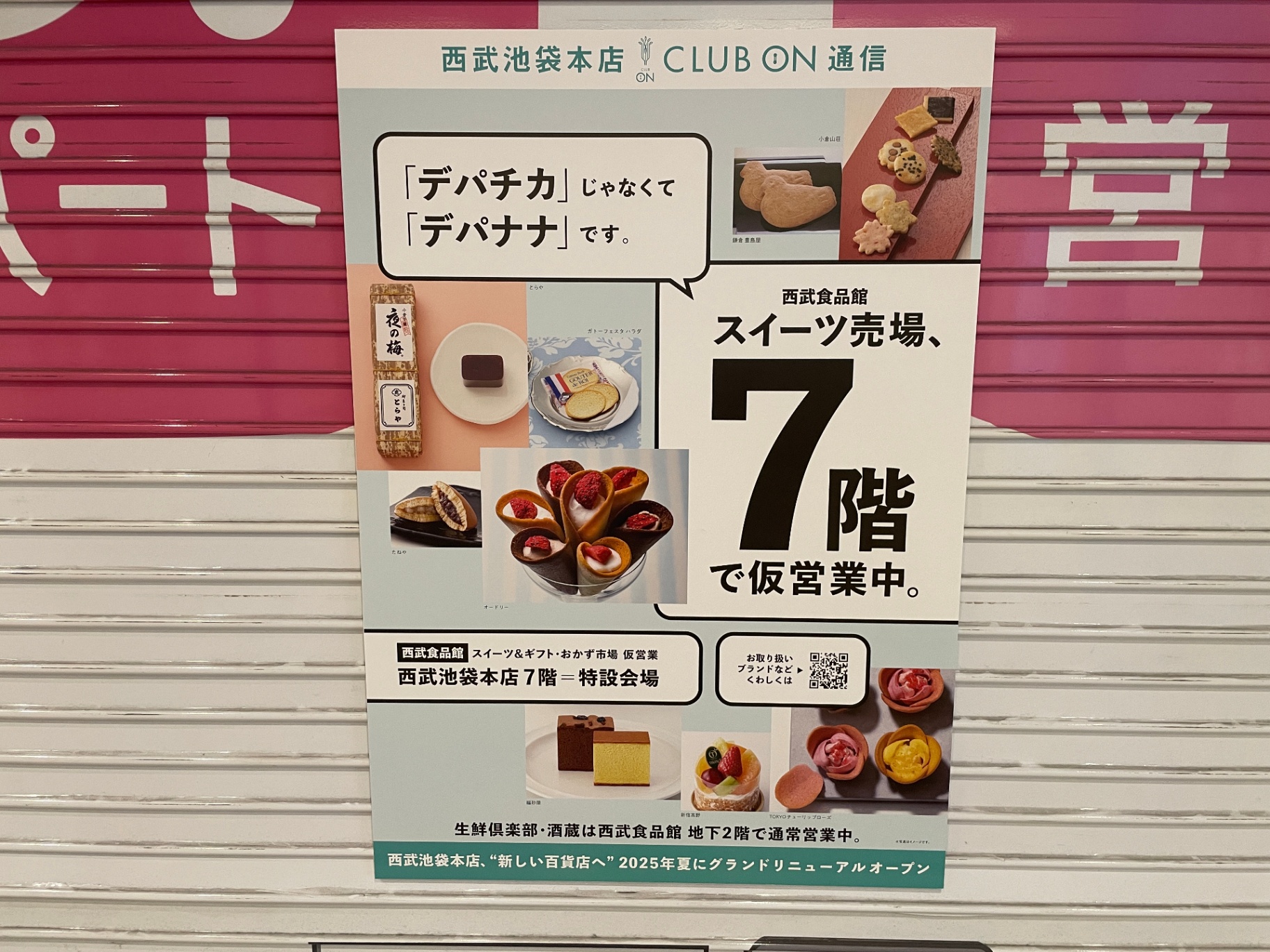 7階での仮営業については、『「デパチカ」じゃなくて「デパナナ」です。』といったユニークなキャッチフレーズとともに、7階にて仮営業していることを知らせる広告もありました。