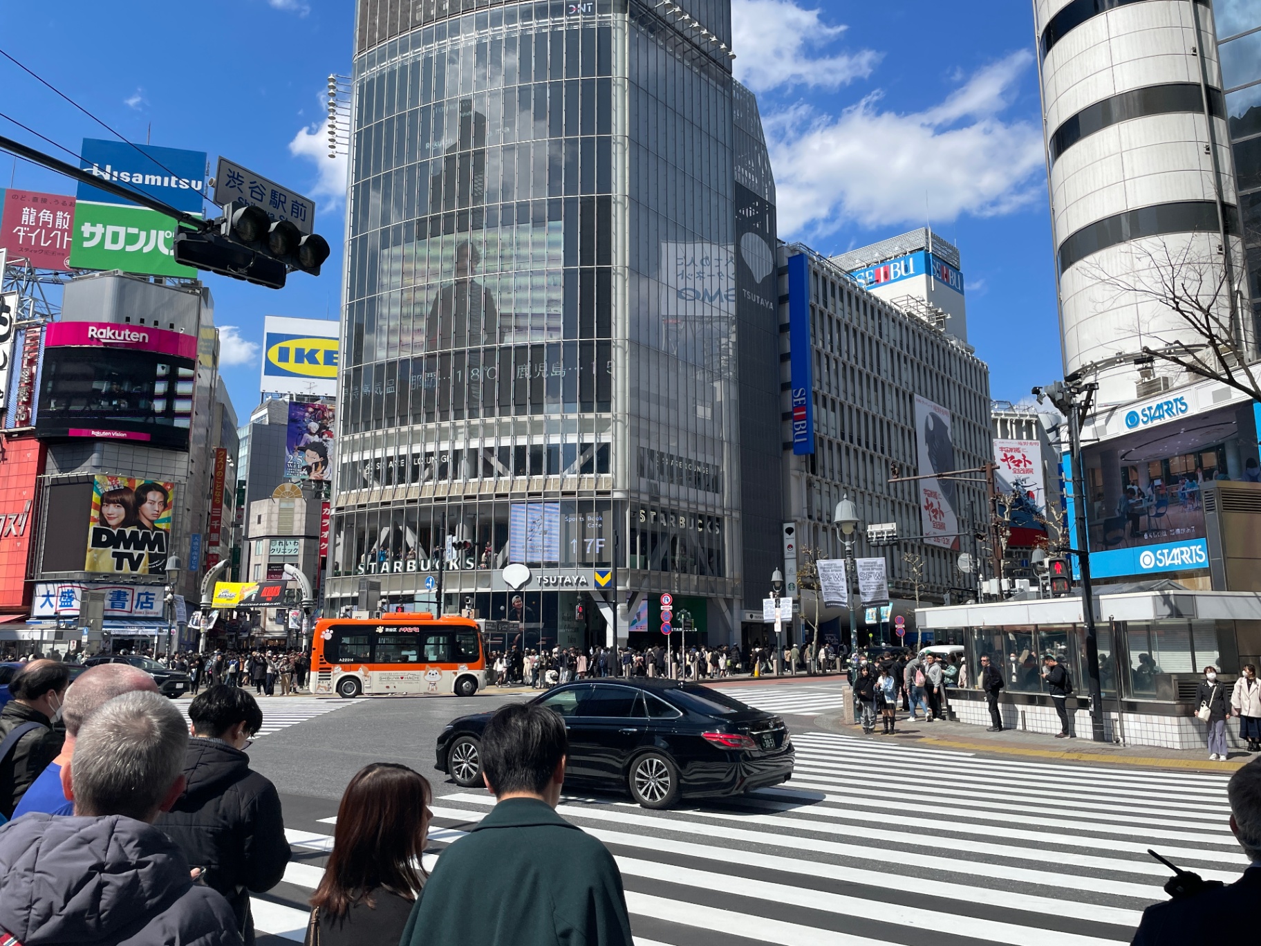 写真をどこから撮るかを迷ったのですが、渋谷店といえば、『アートゲート』と呼ばれるA館の入り口が有名だと思います。道路の向かいからA館全体とB館の一部が映るように撮ってみました。