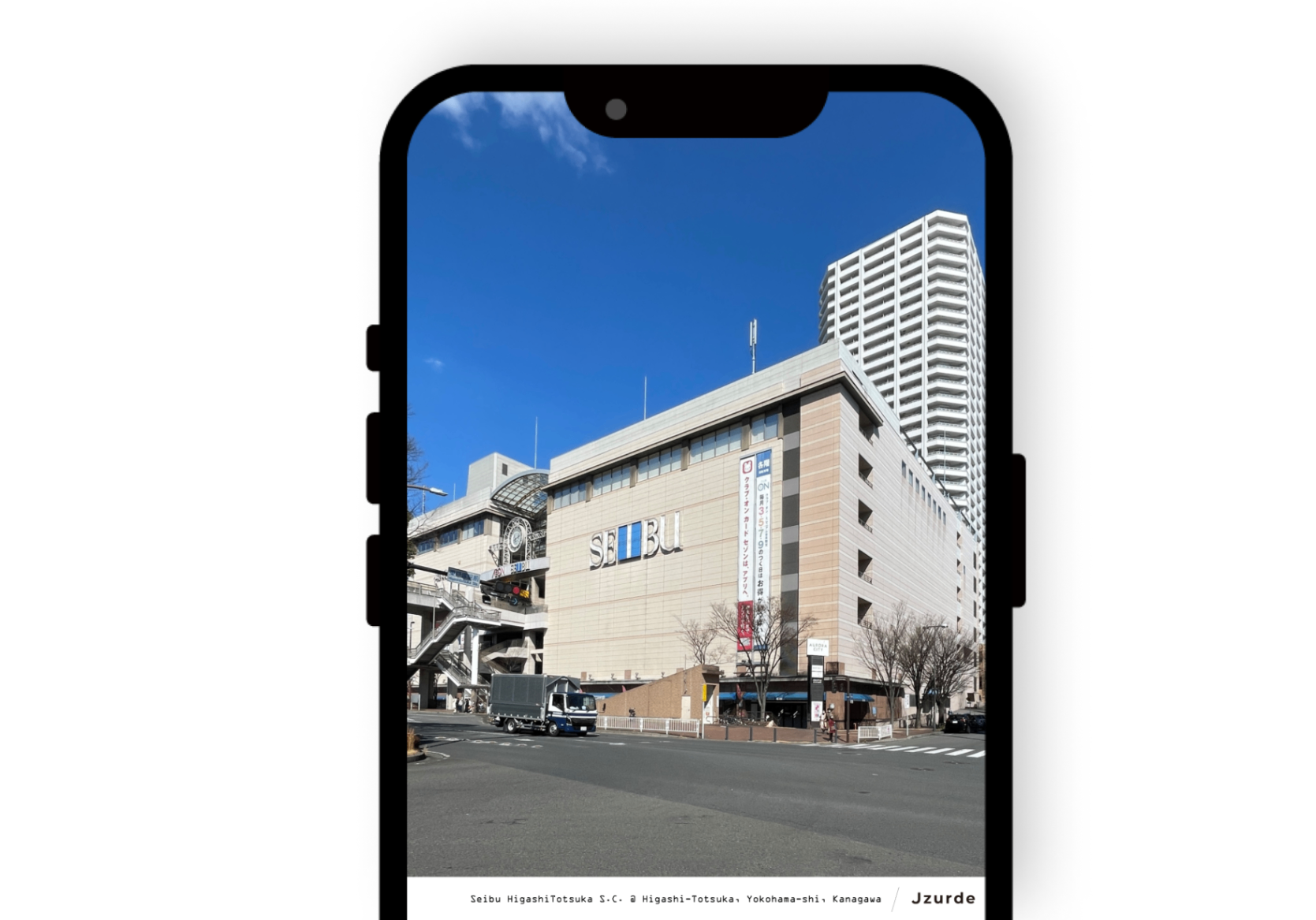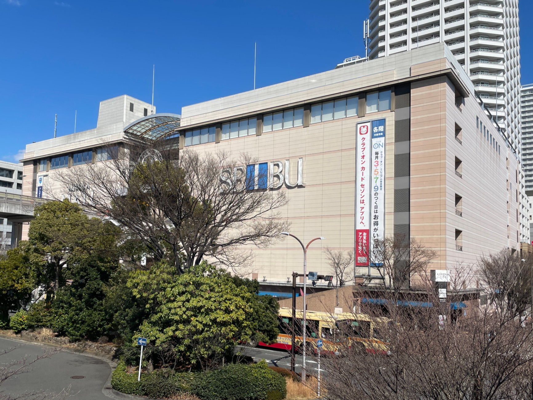 写真は、東戸塚駅側から見える大きな「SEIBU」の文字が映るように撮影しました。