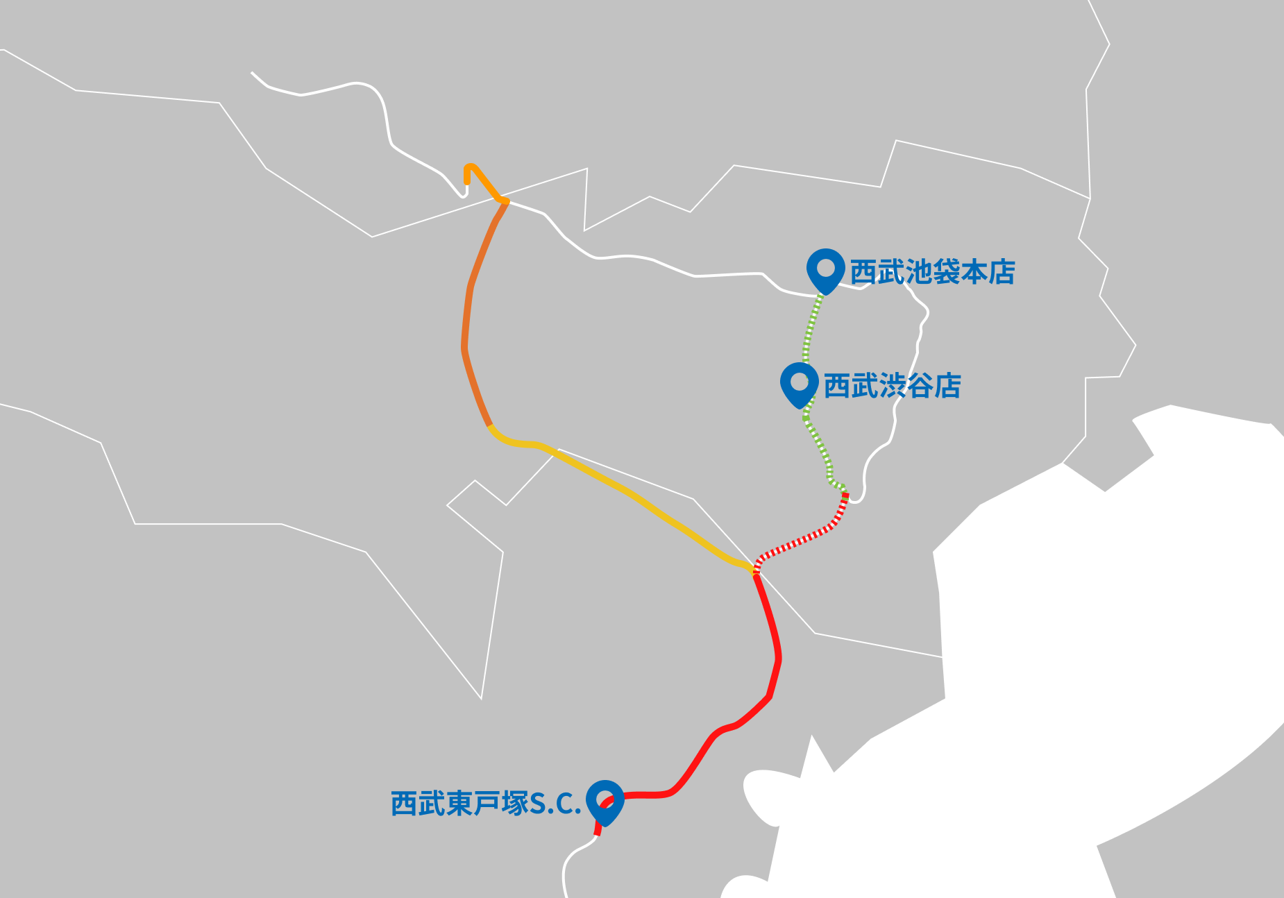 午前10:00。西武各店の開店時間に合わせて旅をスタートします。今回の出発地点は池袋本店にします。