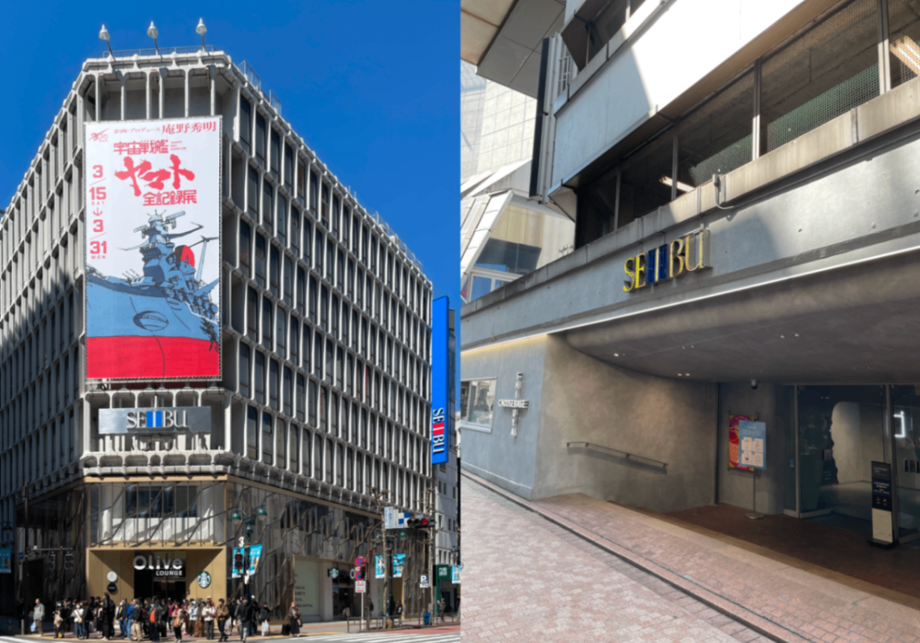 11:00。100年に一度の改良工事・再開発が進む渋谷駅、ハチ公改札からスクランブルスクエアに出ると、見えてきたのが、西武渋谷店のA館です。渋谷店は、A館・B館・ロフト館・Movida館・パーキング館などから構成されていて、元セゾングループのロフトや無印良品などの大型店舗もあります。