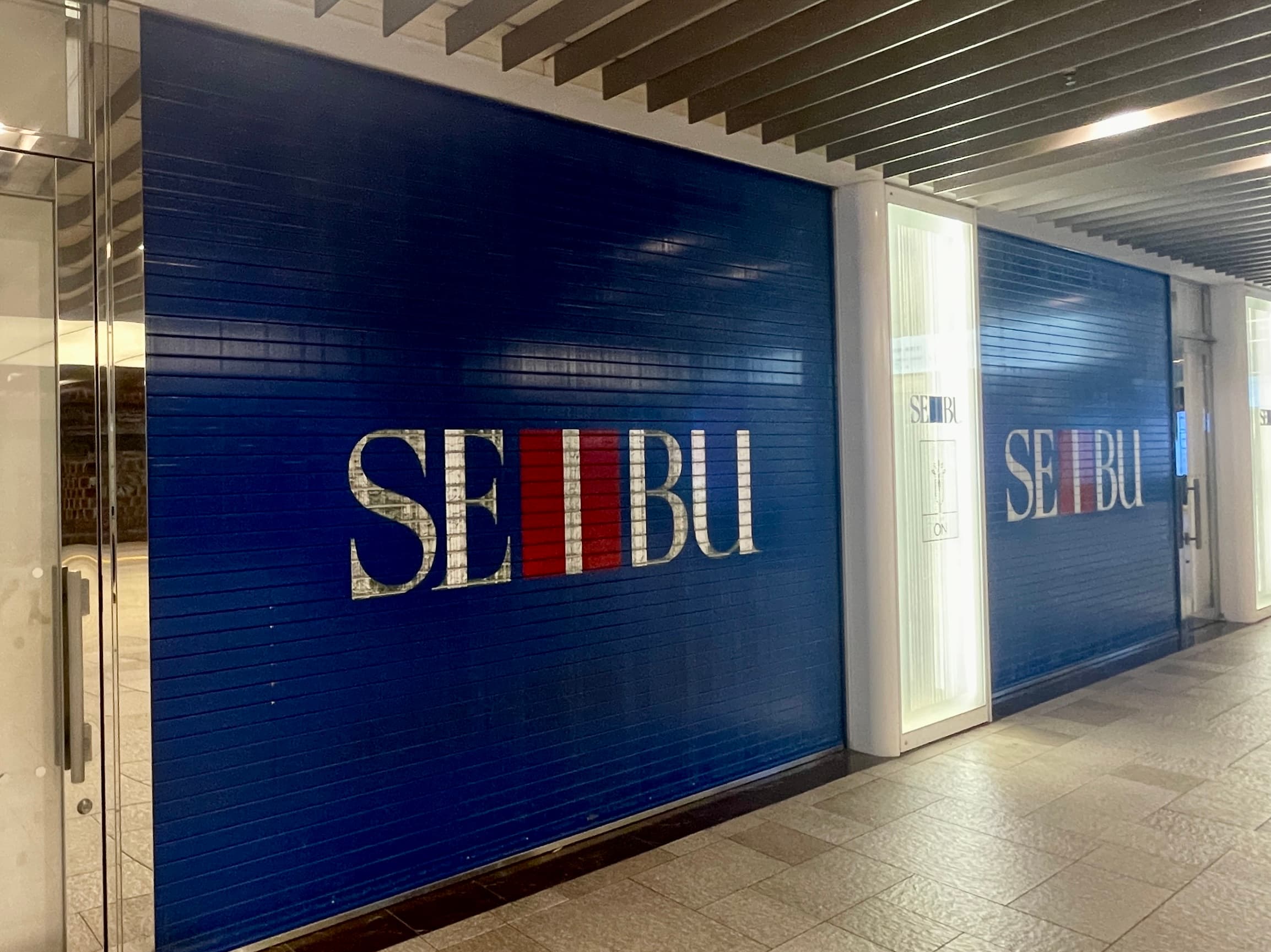 僕は大通りから見た、「SEIBU」の看板が大きく見える写真が好きなのですが、どうやらこの向きは正面ではないみたいですね。特徴的なオレンジ色の入り口も見えるように写真を撮りました。