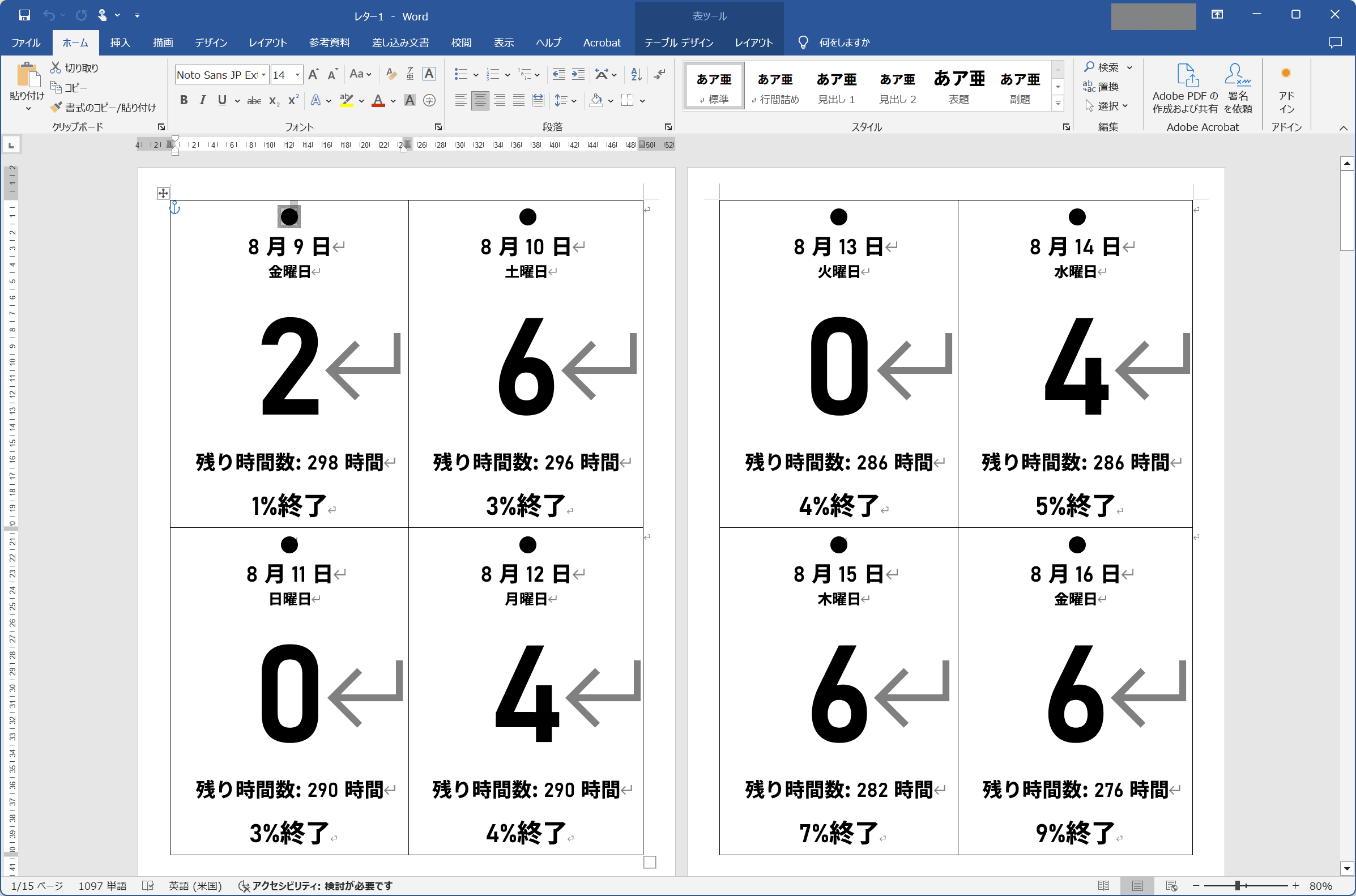 これで、今日何時間、「生産的な活動」をしないといけないのかが一目で分かるようになりました。毎日ちぎって、裏に何やったのかを書いていきたいと思います。